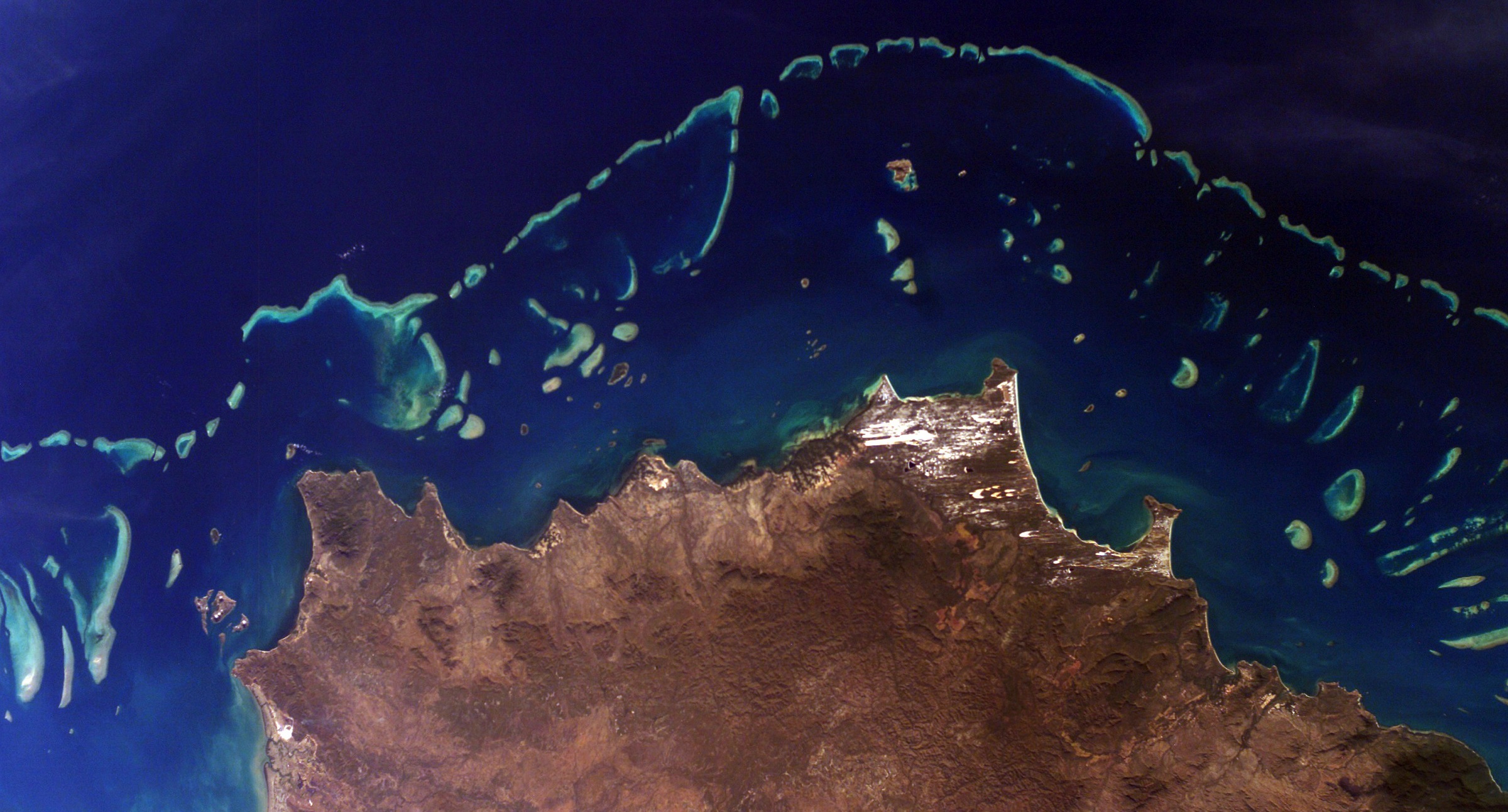 Атолл, вид сверхуОгромный коралловый атолл