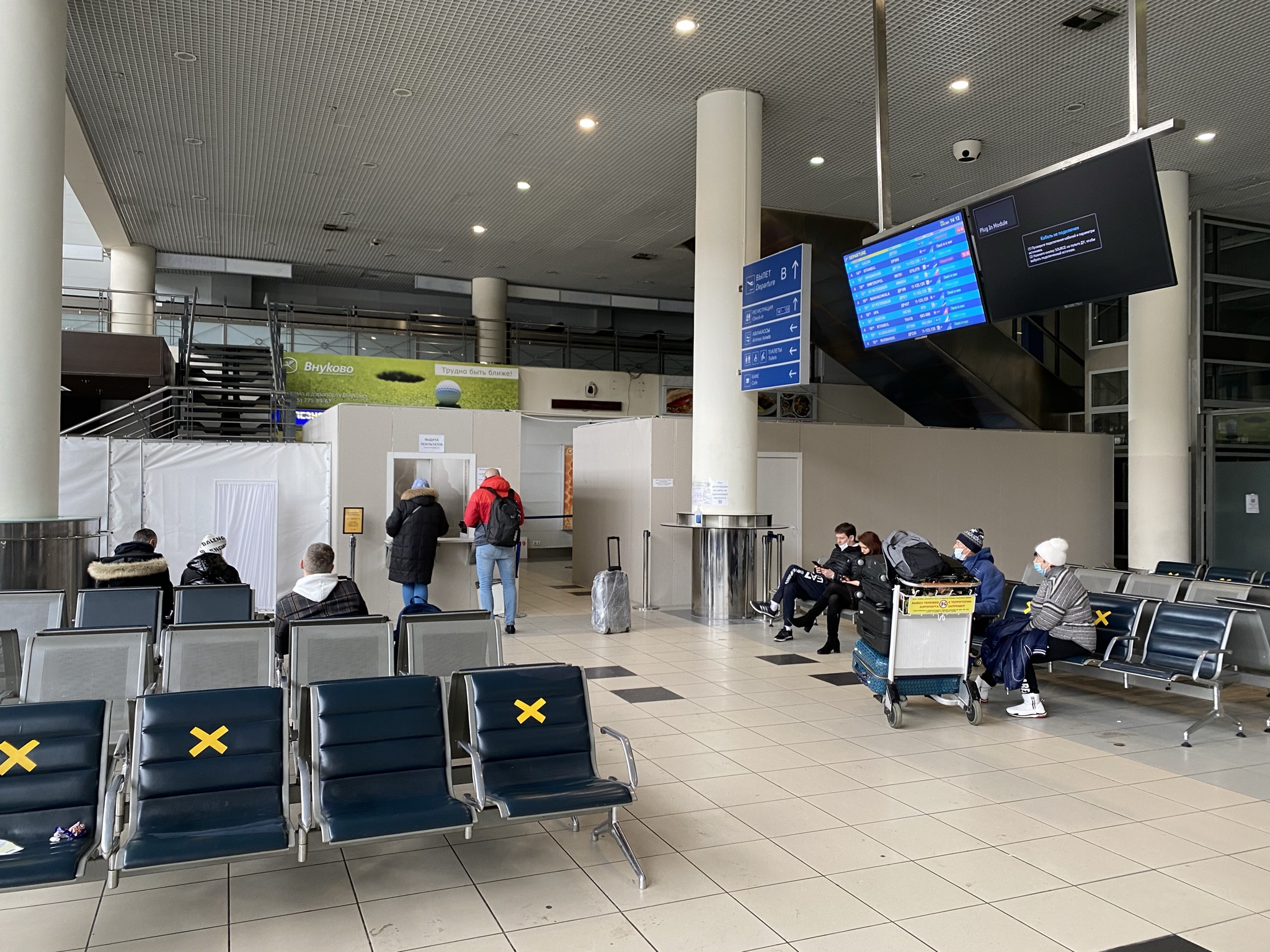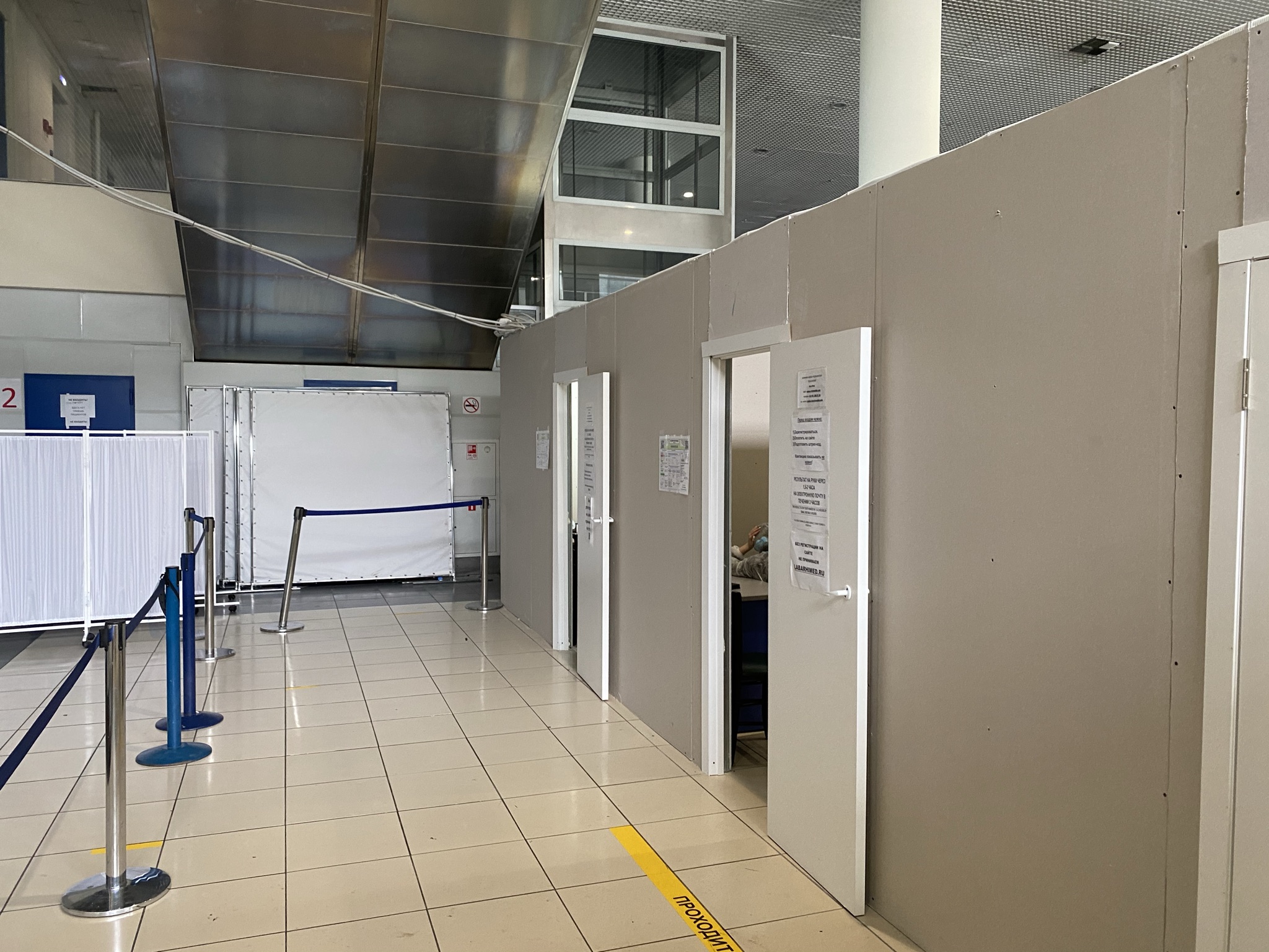 Тест на ковид в аэропорту ВнуковоВыделили пустой зал для этогоВ этом окне получают результатыздесь сдают пцр-тесткабинет врача, который берет ПЦР-тест