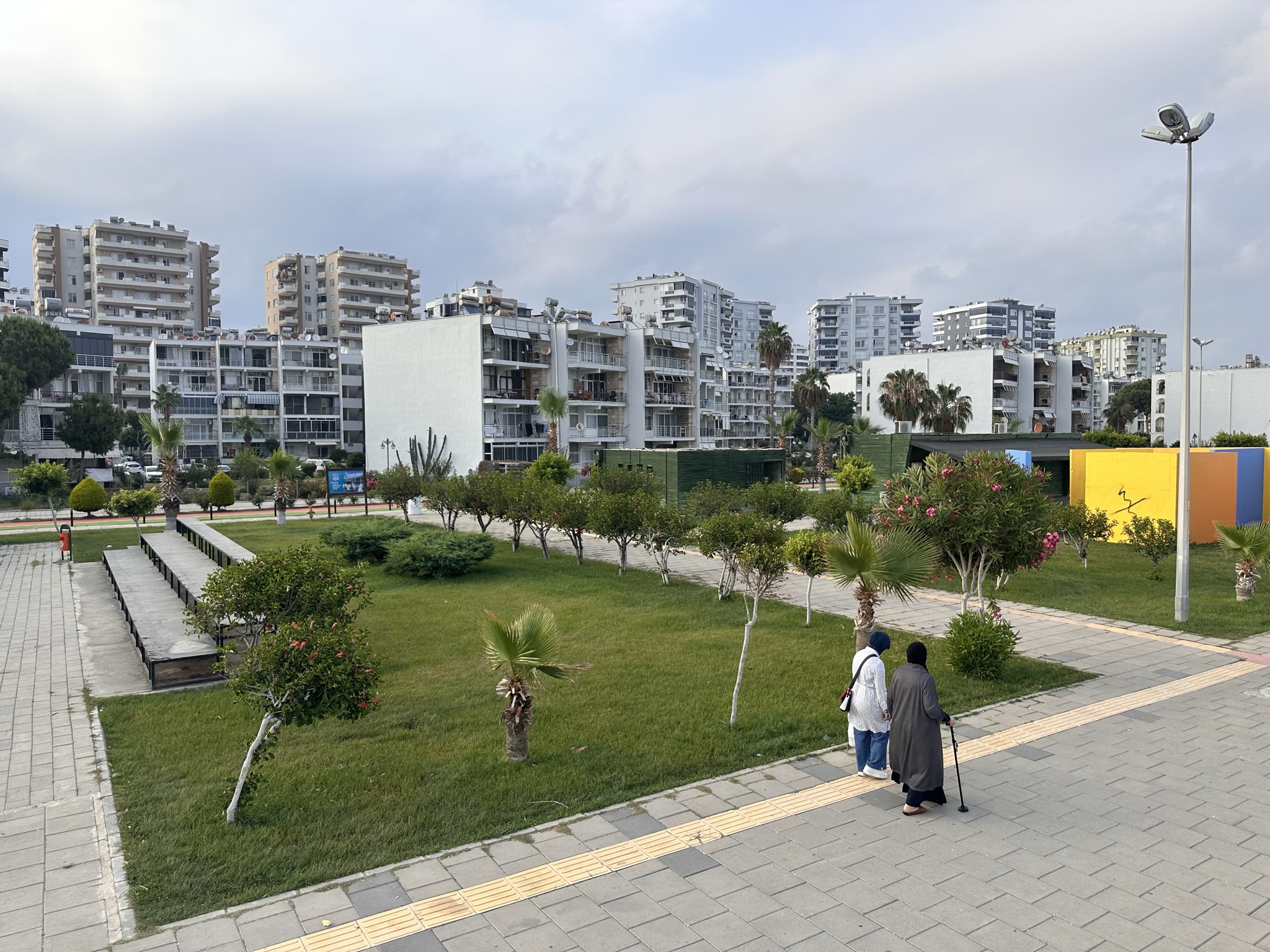Вдоль побережья стоят многочисленные многоэтажки. В целом этот район очень густонаселенный и через него проходит трасса Анталия-Мерсин, постоянно заторы на дорогах. Нередко его называют отдаленным микрорайоном Мерсина.